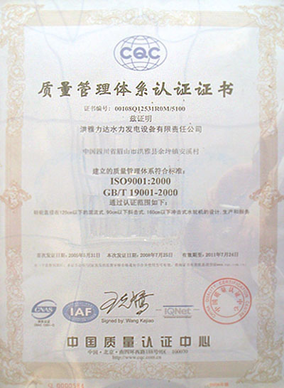 | 質(zhì)量管理體系認(rèn)證書(shū) |